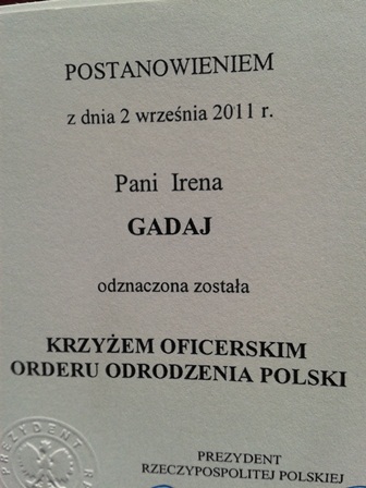 Order od prezydenta RP dla pani Prezes Ireny Gadaj