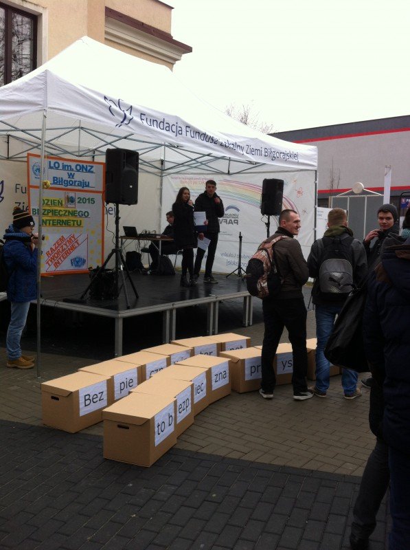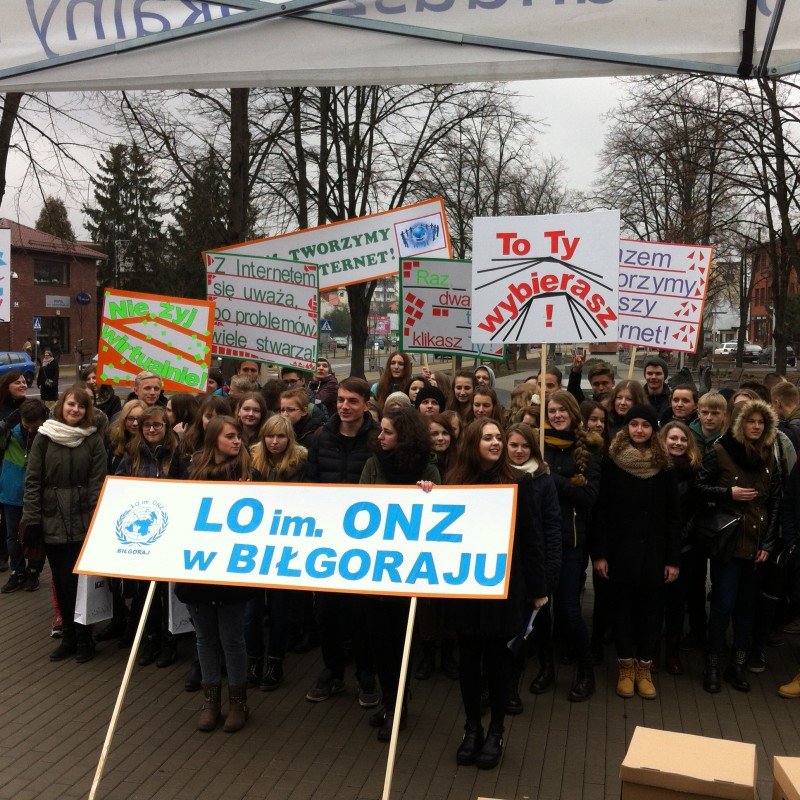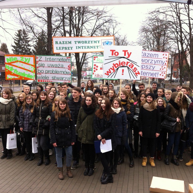 Luty jest miesiącem, w którym z inicjatywy Komisji Europejskiej obchodzony jest Dzień Bezpiecznego Internetu. Co roku, organizatorzy zachęcają szkoły, organizacje pozarządowe, firmy i prywatne osoby do realizowania przez cały miesiąc lokalnych inicjatyw na rzecz bezpieczeństwa młodych internautów. Uczniowie LO im. ONZ od kilku już lat włączają się w propagowanie bezpieczeństwa w sieci. W tym roku klasa I A o profilu architektoniczno-informatycznym wraz z nauczycielami: Anną Dobraczyńską, Anną Zych-Watrak oraz Barbarą Beda postanowiła rozpropagować akcję w naszym mieście. Dlatego też przy pomocy Fundacji FLZB zorganizowany został happening w Przestrzeni S.O.W.A. Jego uczestnicy mogli wziąć udział w konkursach i zabawach z nagrodami. A wszystko po to by, uświadomić młodym ludziom, że Internet jest dla nich a nie odwrotnie.