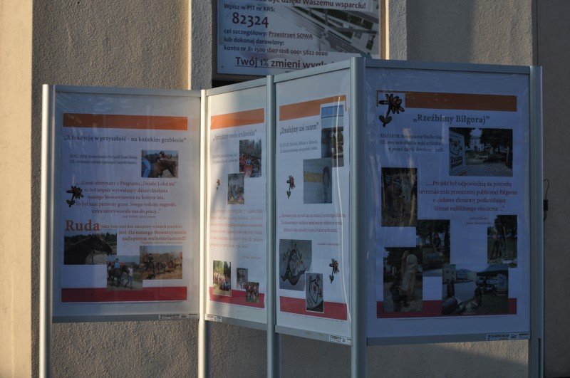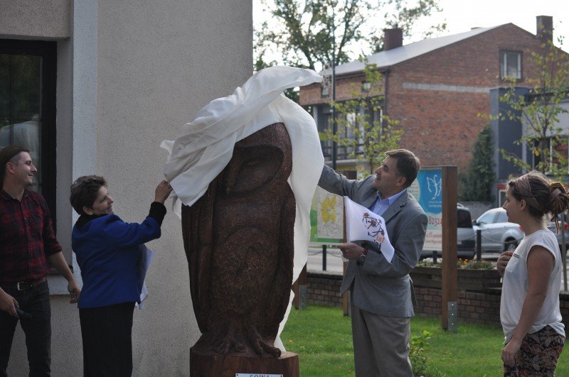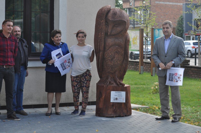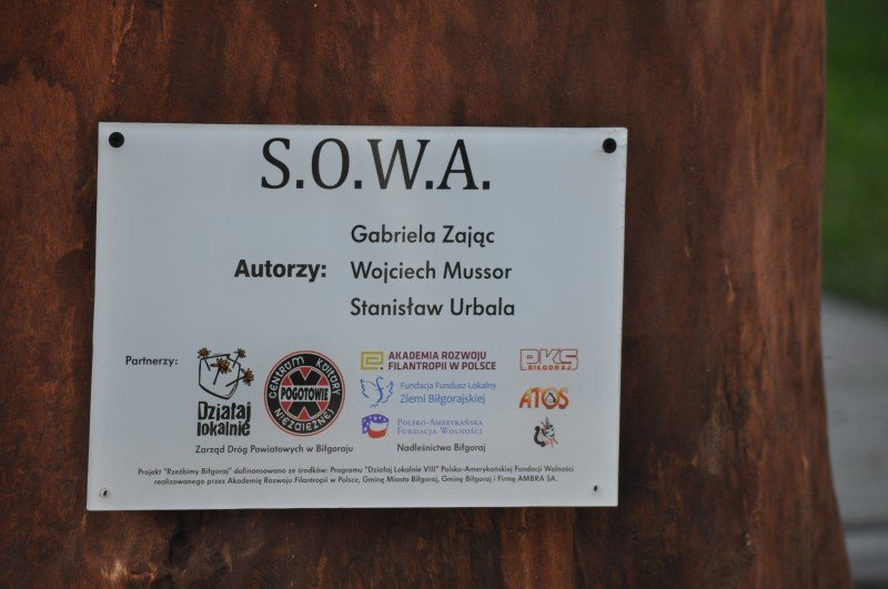 Jednak główną atrakcją dzisiejszego dnia było odsłonięcie SOWY. Rzeźby, która powstała w trakcie realizacji projektu pt."Rzeźbimy Biłgoraj" finansowanego ze środków Programu "Działaj Lokalnie" w ubiegłym roku. Realizatorem projektu było Stowarzyszenie Noodles Stage na czele z prezesem Andrzejem Kluchą i Adrianem Łobaczem - sekretarzem. W uroczystościach odsłonięcia drewnaianej rzeźby, poza zastępcą przewodniczącego Rady Fundacji Panią Urszulą Kolman i sekretarzem Urzędu Miasta Biłgoraj - Bogdanem Kowalikiem, wzięli także udział jej autorzy: Stanisław Urbala i Gabriela Zając.