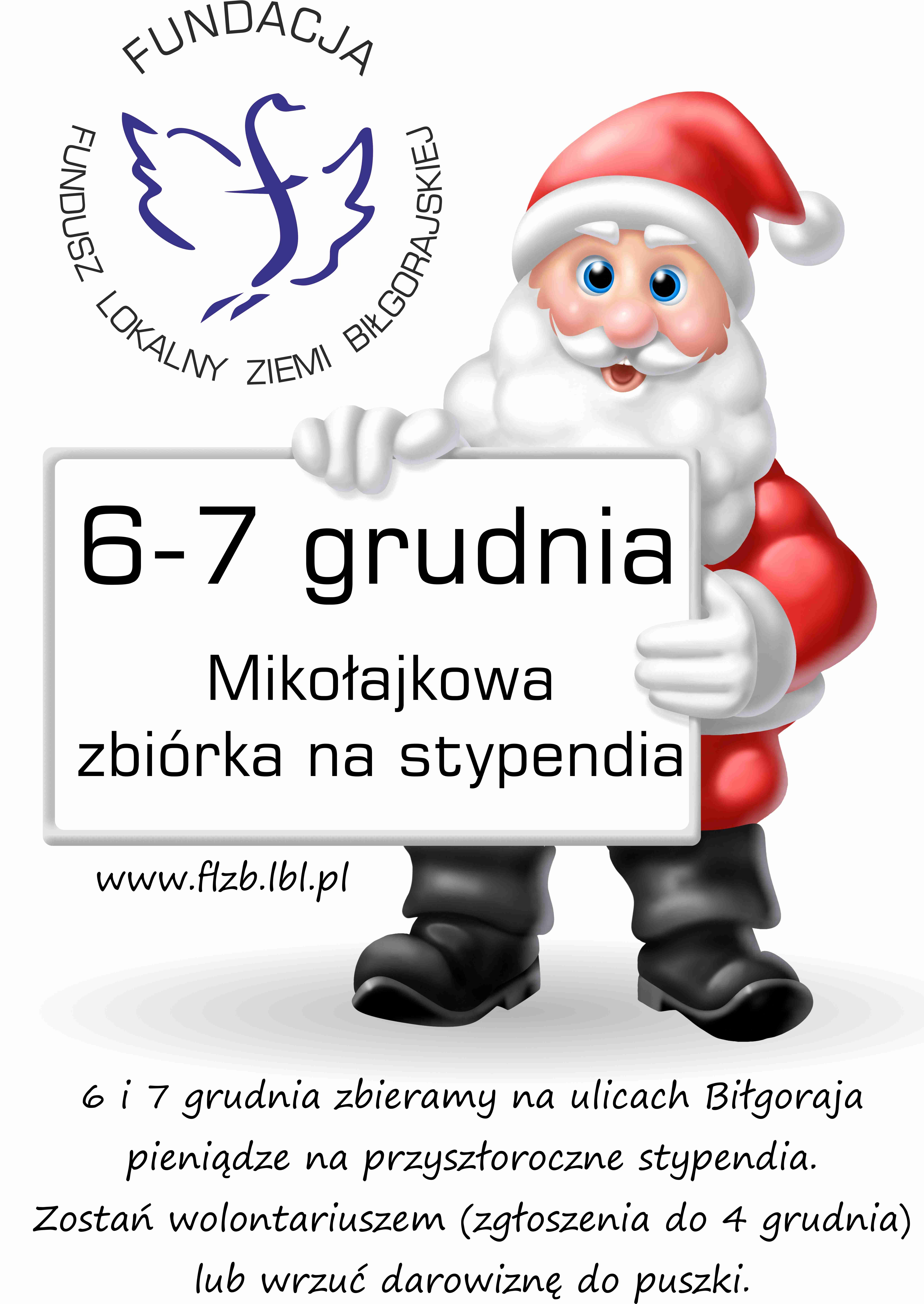 6 i 7 grudnia zbieramy na ulicach Biłgoraja pieniądze na przyszłoroczne stypendia. Zostań wolontariuszem (zgłoszenia do 4 grudnia) lub wrzuć darowiznę do puszki.