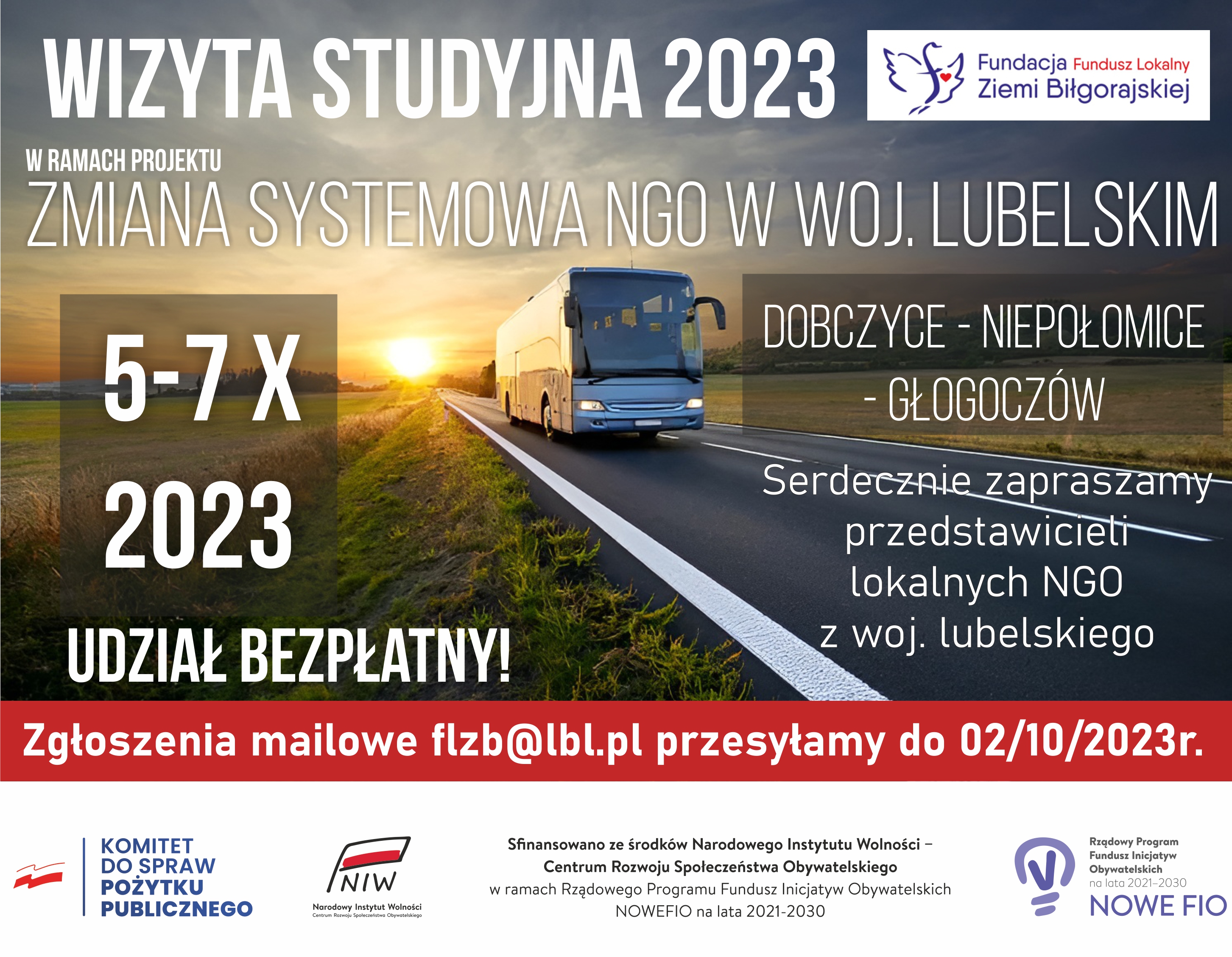 Serdecznie zapraszamy przedstawicieli lokalnych NGO z woj. lubelskiego do wzięcia udziały w niezwykle ciekawej wizycie studyjnej. Zgłoszenia mailowe flzb@lbl.pl przesyłamy do 02/10/2023r. - napiszcie kto i z jakiej organizacji chce jechać. Mamy dla was 25 miejsc więc decyduje zarówno kolejność zgłoszeń jak i liczba osób z danej organizacji.