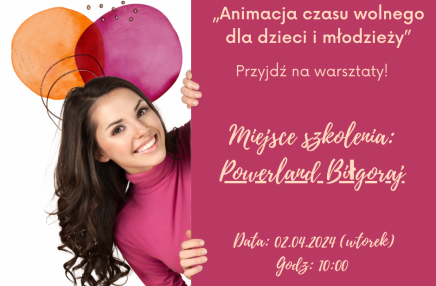 2024-03-20 Szkolenie rozwijające dla wolontariuszy „Animacja czasu wolnego dla dzieci i młodzieży” W ramach działalności Centrum Rozwoju Wolontariatu szkolimy, pomagamy, wspieramy, doradzamy, promujemy ideę wolontariatu oraz doceniamy najbardziej aktywnych. W związku z tym mamy przyjemność zaprosić wszystkich zainteresowanych wolontariuszy do udziału w wyjątkowym szkoleniu rozwijającym pt. „Animacja czasu wolnego dla dzieci i młodzieży”. Jest to niepowtarzalna okazja do zdobycia cennych umiejętności, które pozwolą na efektywne i twórcze wypełnianie czasu wolnego najmłodszych. czytaj dalej »