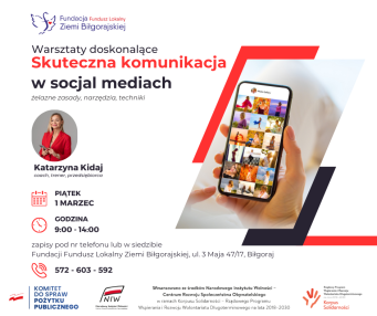 2024-02-14 Zapraszamy na warsztaty "Skuteczna komunikacja w socjal mediach". Mamy przyjemność zaprosić wolonatriuszy zarejestrowanych w Systemie Obsługi Wolontariatu na atrakcyjne warsztaty doskonalące komunikację w mediach społecznościowych, które poprowadzi Katarzyna Kidaj - couch, trener, przedsięboirca. czytaj dalej »