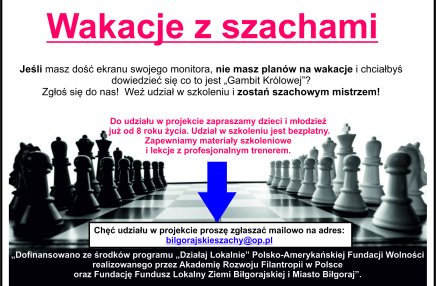 2022-07-05 "Zostań szachowym mistrzem" razem z nami Zapraszamy na bezpłatne wakacyjne zajęcia szachowe. czytaj dalej »